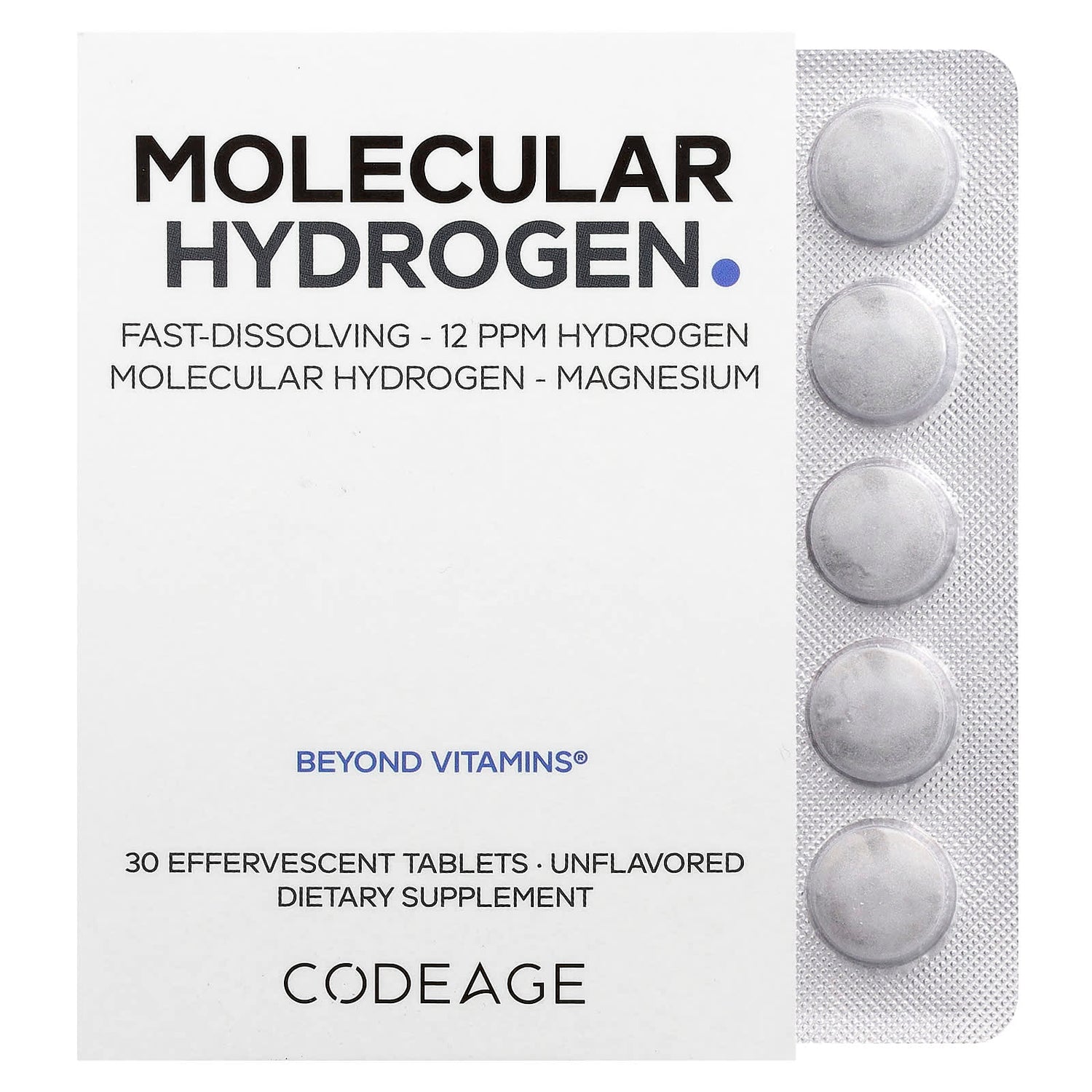 - Codeage Molecular Hydrogen offers a fast-dissolving hydrogen tablet with 12 PPM hydrogen, designed to support hydration and overall wellness in a convenient, effervescent form.