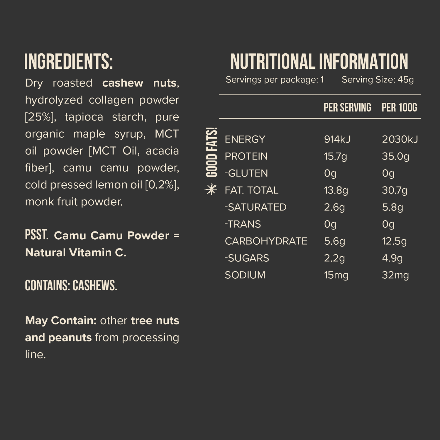 Chief have chosen collagen as the protein source for these bars based on new and rapidly evolving research into its unique benefits. This odourless white powder has been researched by the Australian Institute of Sport and is used by many of the world's top sporting teams for better recovery, healing and injury prevention. It's now also showing great results in anti-ageing.