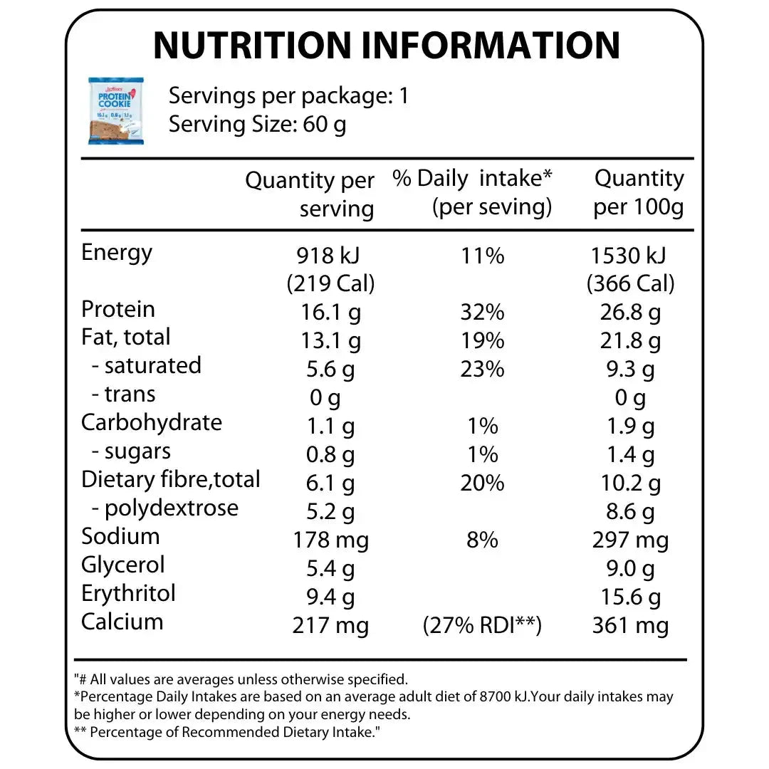 This choc chip flavour is a delicious soft cookie that is high in protein and fibre to help you feel fuller, longer. Time to unleash your inner cookie monster.