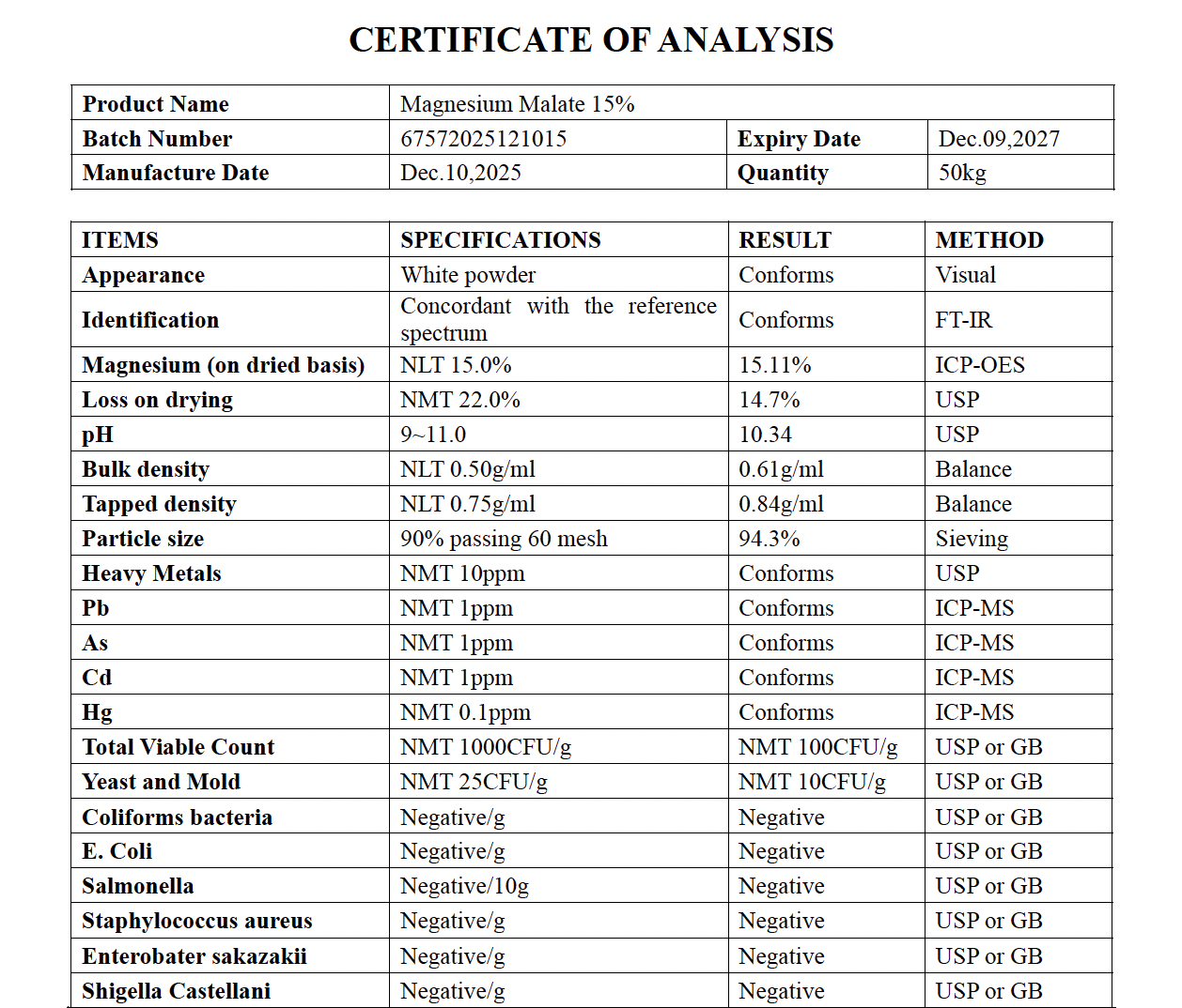 | Magnesium Malate (mg) | 100000 | 2500 |