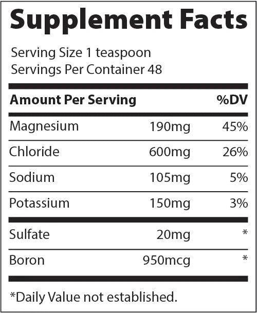 Ionic Trace Minerals complex, purified water, Utah Sea Minerals™, potassium chloride, Non-GMO citric acid.