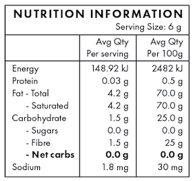 Ingredients: Non GMO Coconut C8 C10 MCT Oil Powder, *Organic Acacia Gum fibre *Please note these are natural fibres used in in the spray drying process